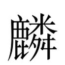 1. 大雄鹿。 2. 麒麟。 3. 雌麒麟。4. 通「鱗」。鱗甲。 5. 麟州的省稱。故治在今陝西省神木縣北。 6. 〔麒麟〕①一種傳說中罕見的神獸。亦作「騏驎」。②用炭末製成的獸形燃料。③《詩經˙周南》的篇名。亦作「麟之趾」。 7. 姓。